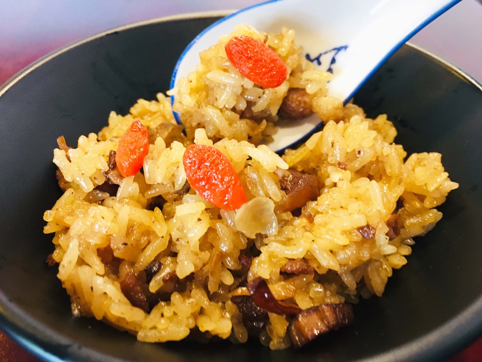 「香菇油飯Uben」也是戴老師精選,份量不多,但吃得出烹調的用心。扎實Q彈的油飯粒粒分明,以肉燥、香菇和枸杞做調味,自然散發的微甜鹹香很夠味,讓人忍不住一口接一口,是店內很受歡迎的主食。