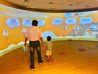 親子同遊故宮第一站可先到B1的「兒童學藝中心」讓孩子跑跳玩耍,一方面透過充分活動來放電,有助於待會專注看展,另一方面藉由新媒體科技遊戲來引起孩子對故宮文物的興趣。展廳以兒童角度重新詮釋《海怪圖記》、《清院本清明上河圖》等典藏精選文物,小福寶在這邊看卡通、玩體感遊戲、畫畫、拍情境照...領取服務台贈送的《海怪圖記》貼紙,玩得不亦樂乎!建立起對故宮文物趣味的第一印象。